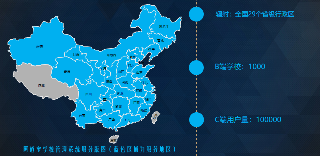 阿道宝教育科技是专注教育产业互联网化的服务提供商, 目前主要涵盖 ERP学校管理系统、安全宝、随时付、商学院等教育周边产品。 以“SaaS服务+增值赋能”战略全面布局教育服务产业,主要解决教培机构营销管理、安全保障、金融支付及优化产业链等问题。